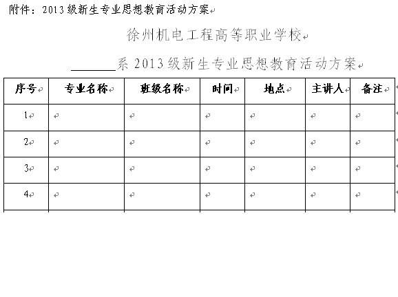 5.各系在8月26日前将“2013级新生专业思想教育活动方案”(见附件)报送教务处备案,并严格按照方案执行,保存相应过程记录。