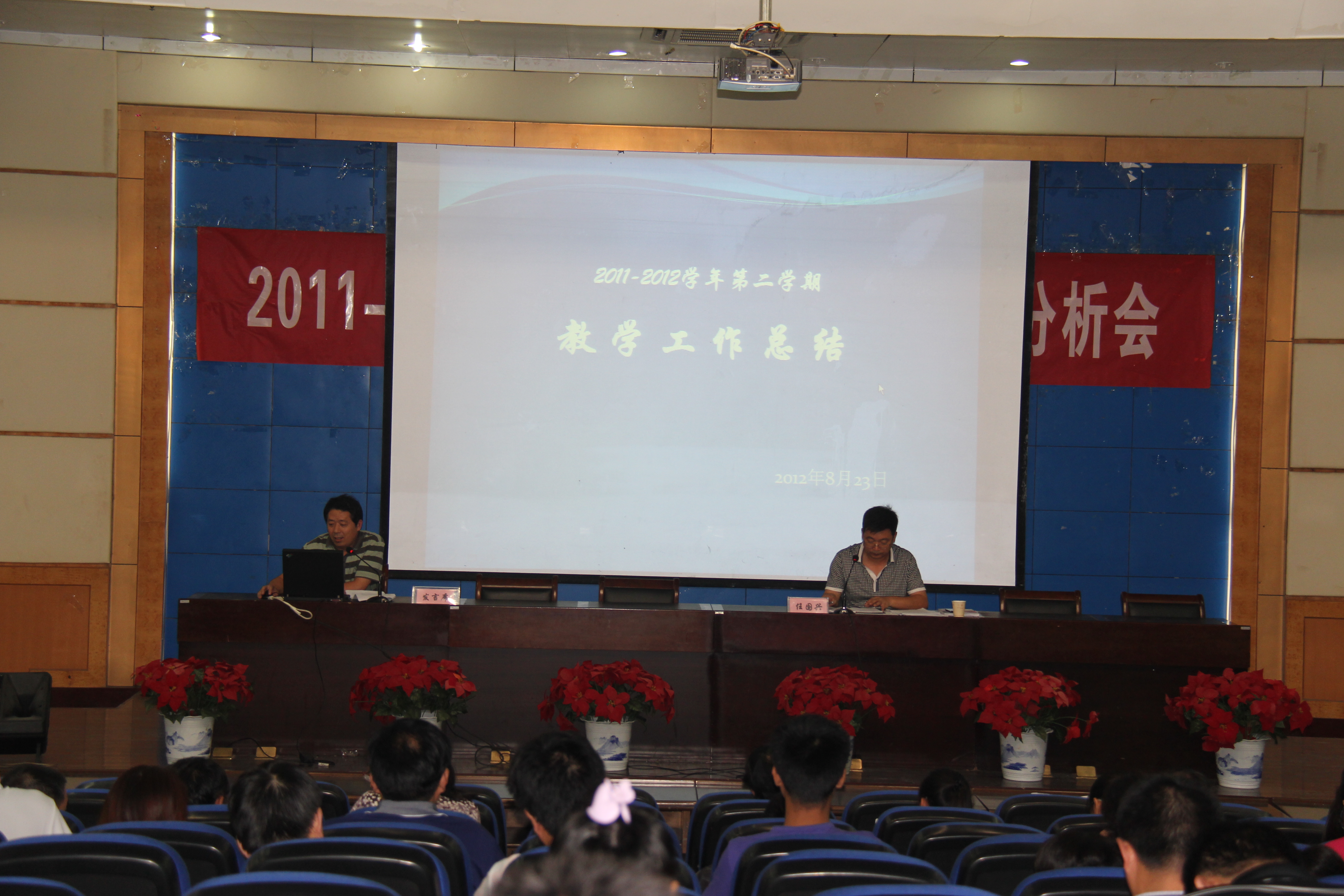 为进一步规范教学质量管理,探究教学过程中存在的主要问题和薄弱环节,我校于2012年8月23日召开了2011-2012学年第二学期教学质量分析会,学校党委书记孙健身、副校长任国兴出席会议,全体任课教师参加,会议由副校长任国兴主持。