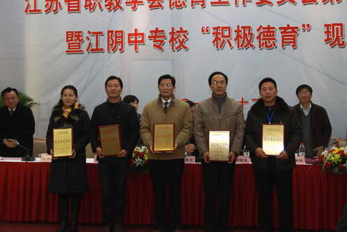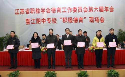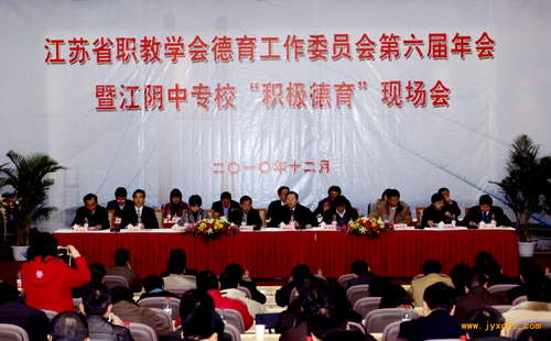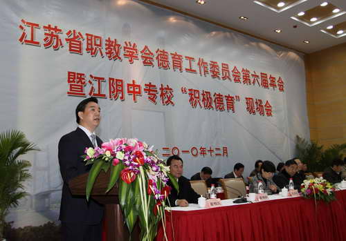 由江苏省职教学会德育工作委员会主办、江苏省江阴中等专业学校承办的“江苏省职教学会德育工作委员会第六届年会暨江阴中专校‘积极德育’现场会”于12月15日—17日,在江苏省江阴市隆重召开。江苏省职教学会会长周稽裘,江苏省教育厅职教处处长尹伟民,江苏省职教学会秘书长王秀文,省职教学会德育工作委员会主任、南京市教育局副局长陈舒泛,省职教学会德育工作委员会常务副主任、南京市教研室主任张荣胜,省职教学会德育工作委员会副主任周俊、许振华、王乃国、张旭,省职教学会德育工作委员会副秘书长李国龙,无锡市委教育工委副书记王珍珍,无锡市教育局副局长符菊成,无锡市教育局高职处处长冯益民,江阴市委常委、市纪委书记孙英,江阴市教育局局长屠湘如,江阴市教育局副局长王玉泉,以及有关市德育工作委员会负责人等领导出席了会议。来自全省153所职业学校的272名代表参加了会议。其中学校一把手领导18人,副校长95人,学生处主任134人,会议代表层次之高,前所未有,是一次上规模的德育盛会。
