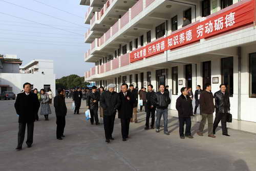 12月16日上午,与会领导和代表们观摩了江阴中专校的积极德育现场。尽管气温降到入冬以来的最低温,却丝毫不影响代表们观摩的热情。江阴中专校的疯狂晨读、军训化课间操、文化校园、德育餐厅、军营化宿舍、学生创业园、9S实训中心给与会代表留下了深刻的印象。代表们纷纷拿出相机和手机拍摄精彩的瞬间与场景。