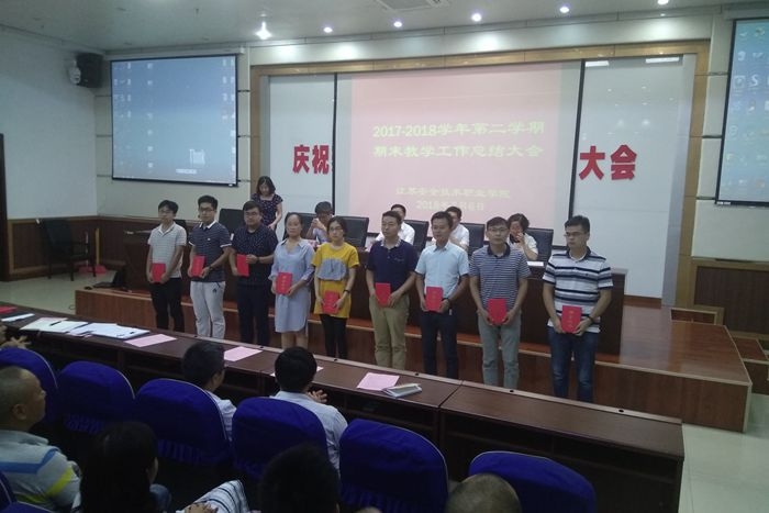 副院长吴如根宣读了苏安院〔2018〕75号《关于表彰教学质量工程项目的决定》。表彰优秀教学团队4个,省级项目优秀指导教师18人,学校信息化教学大赛一二等奖获得者14人,首届课程思政说课比赛一二等奖获得者9人。院领导徐建春、吴如根、任国兴、薛莲分别为获奖团队和个人颁发证书。
